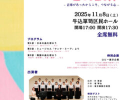 東京韓国合唱団 第五回定期演奏会 ゲスト演奏にて伴奏者として出演します 2025年11月3日 レッスンブログ 海老名市大谷のピアノ教室石田音楽教室です。 こちらの演奏会に、ゲスト演奏にて伴奏者として出演いたします♩ 興味のある方いらっしゃいましたらお問い合わせください[...] 続きを読む
